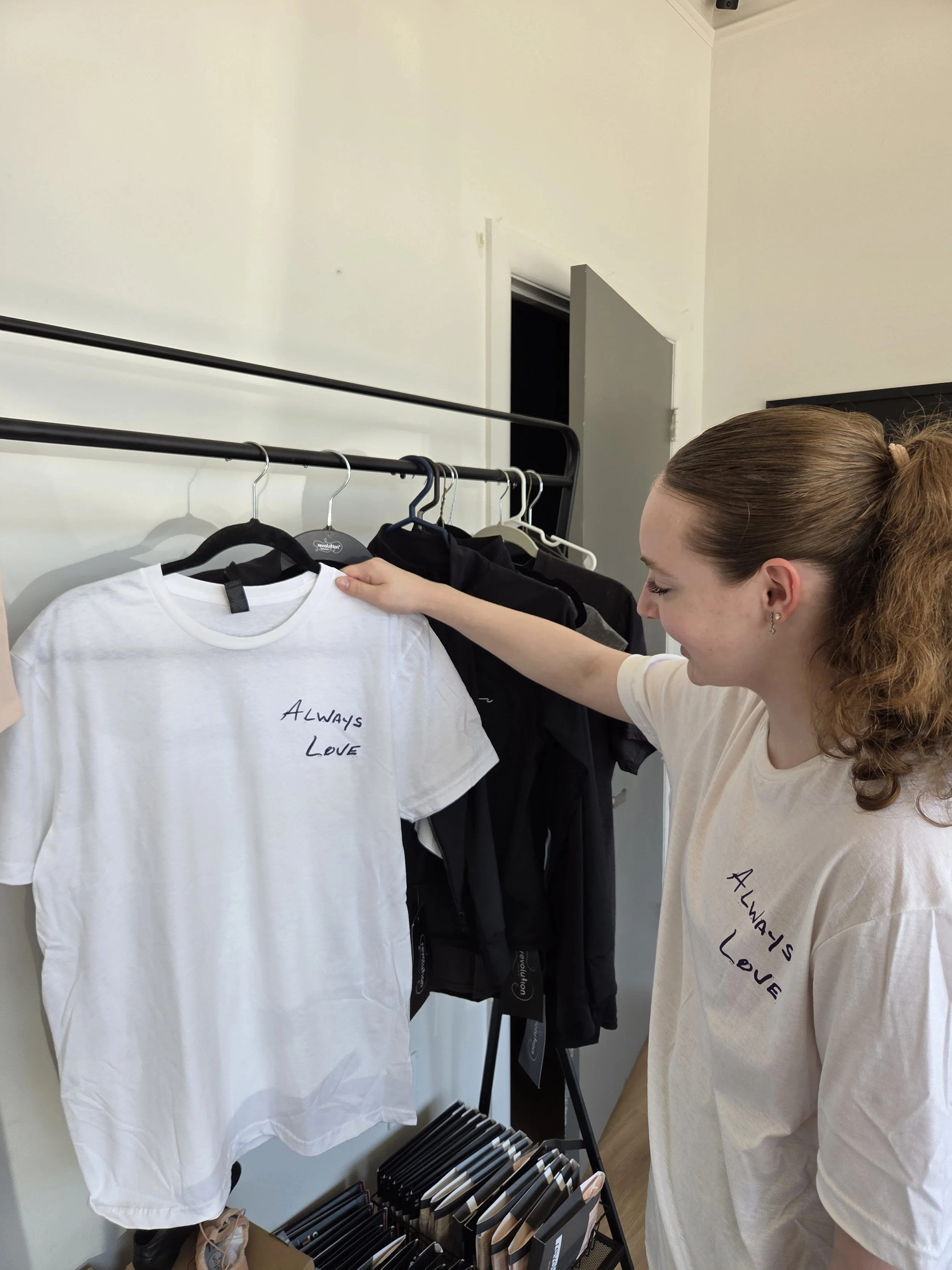NEW! Always Love ShirtsOrder an Always Love shirt today! Featuring one of our mottos that we live by at En Pointe, written in our beloved founder, Kathy’s, handwriting.